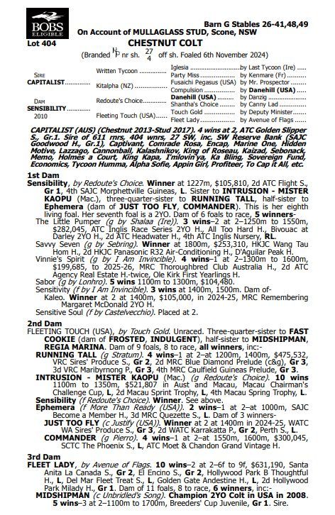 Sale Comments: He was a horse that we just had to come home with. He is a good looking, athletic colt. He walks well, has a great attitude and has a nice page behind him. Out of a G1 placed mare who has had 5 winners from six to race. Ticks all of the boxes!