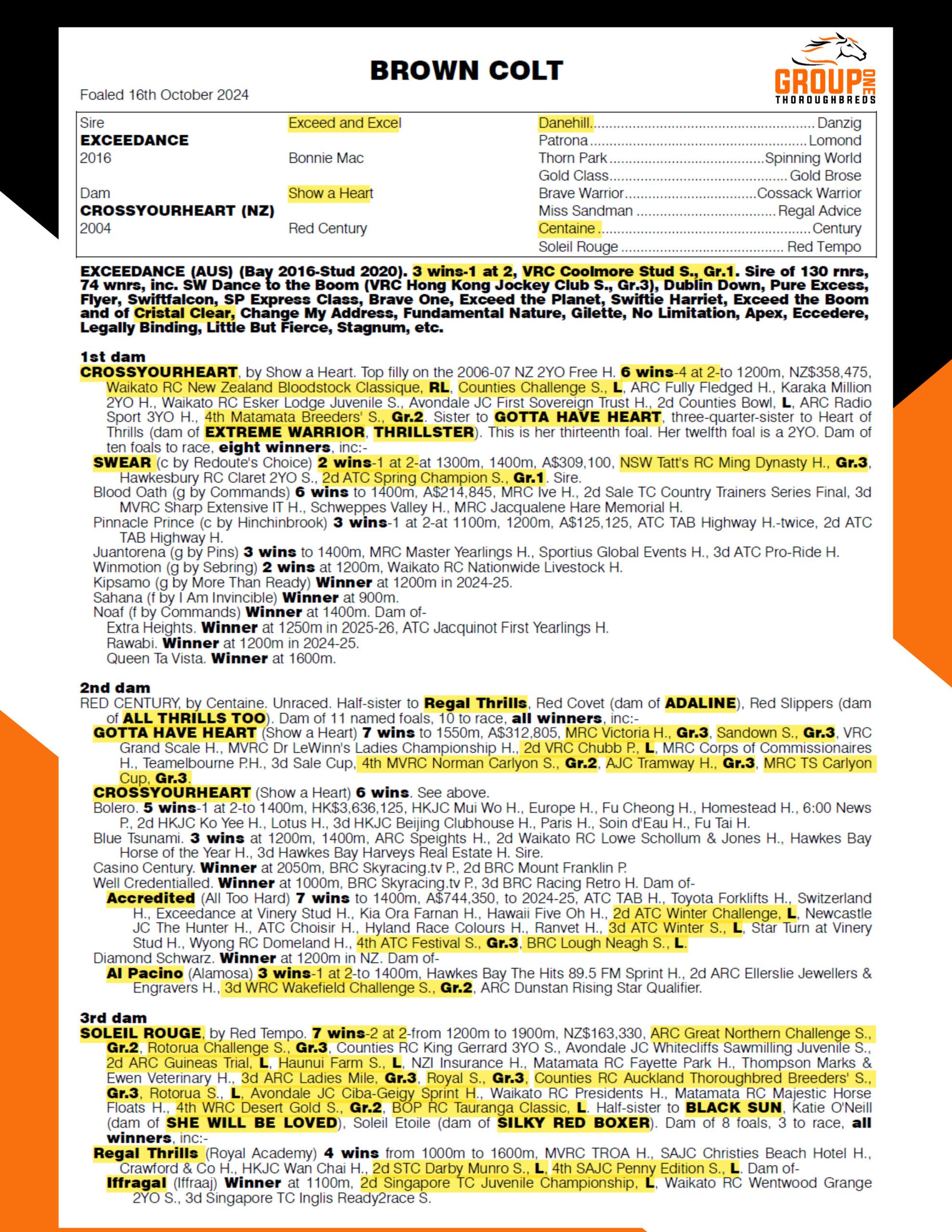 A LOVELY COLT WITH GOOD SIZE AND STRENGTH. GREAT WALK WITH FLUENT MOVEMENT BY EXCEEDANCE OUT OF A MULTIPLE STAKES WINNER