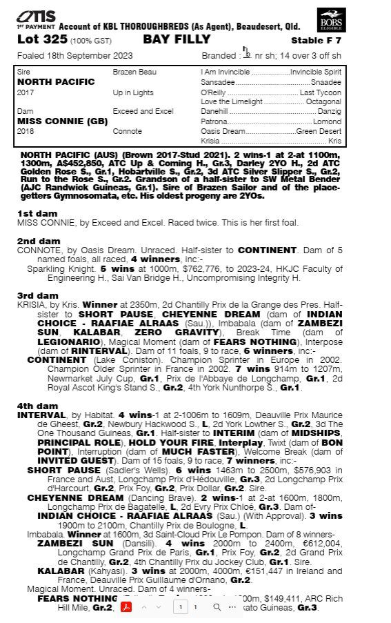 This filly by North Pacific out of Miss Connie is a well-balanced strong, forward-looking type with a lovely fluid walk.